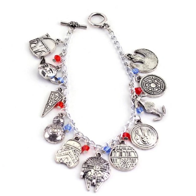 Pour résumé un peu Star Wars nous te conseillons de porter ce Bracelet Ornement qui contient tout les logo et les personnages emblématique de la franchise.