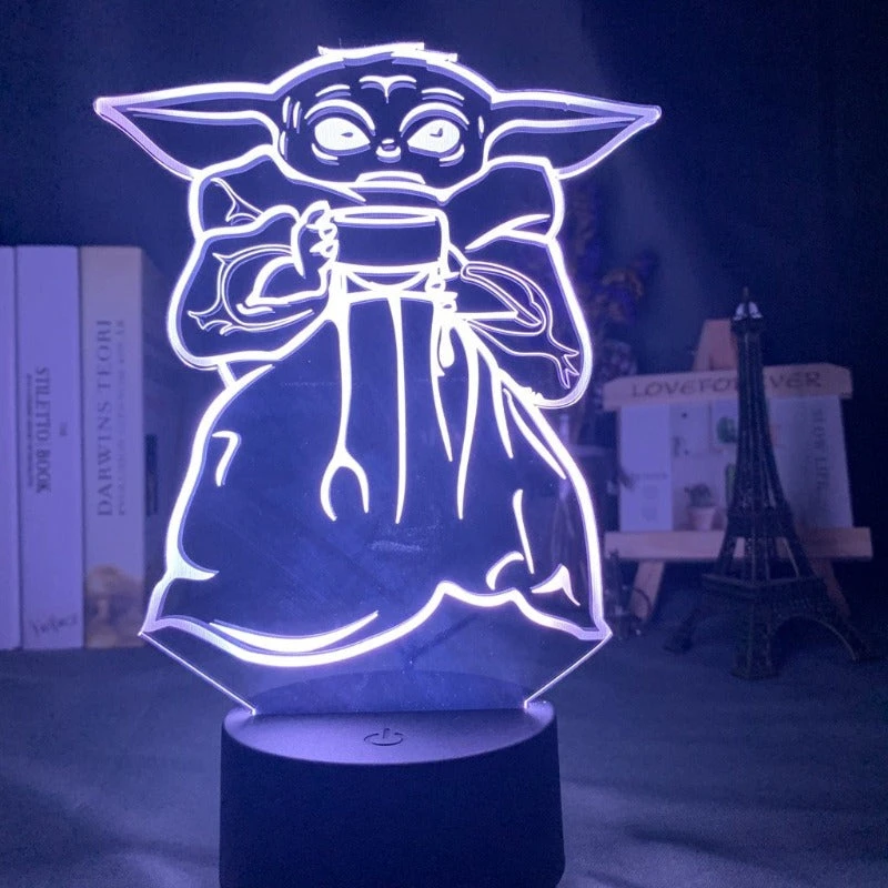 Dans cette Lampe 3D, retrouve le personnage de « Thé Mandolorian » qui ressemble fortement au Maitre Jedi Yoda enfant mais qui n’est certainement pas lui, ce personnage nommé « l’Enfant » dans la série qui apparaît dans l’épisode aussi nommé « l’Enfant ».