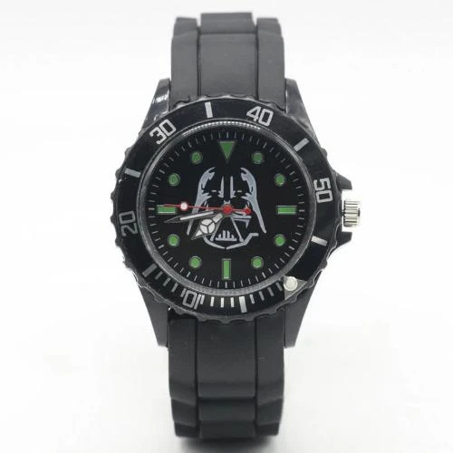 Adopte un Black et borderline avec cette Montre Dark Vador en PC. Le casque de Vador est imprimé dans le cadran sur fond noir.