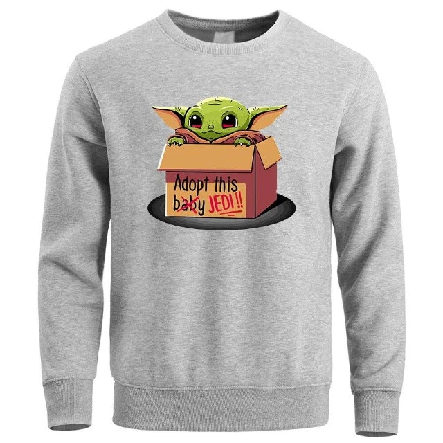 Baby Yoda dans une boite en carton, cette scène tu ne la verras que chez Jedi Shop comme design de ce Pull, et pour cause tous nos dessins sont originaux.