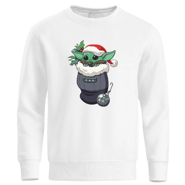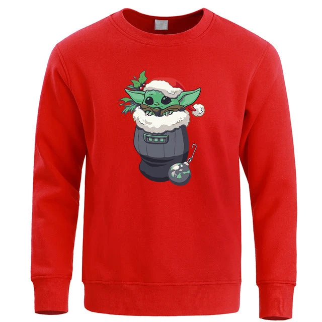 Découvre sur ce Pull de Noel un design très représentatif de cette période de l’année, en effet sur ce pull est représenté l’enfant » Baby Yoda » en Père Noel.