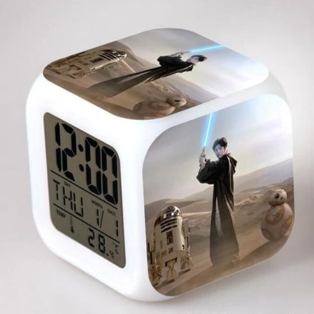 Découvre dans le Réveil R2D2 ce héro robot des premiers épisodes de la franchise Star Wars avec BB 8 et Anakin Skywalker.