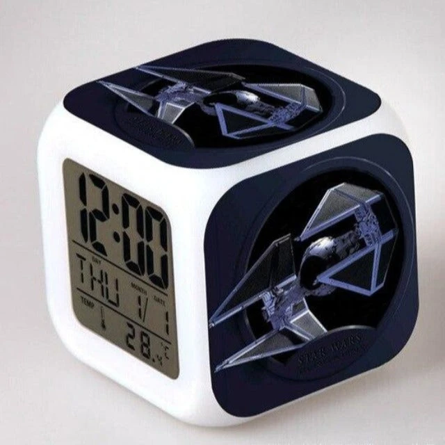 Le fan du coté obscur aimerait surement avoir ce Réveil Veilleuse Star Wars qui montre un Vaisseau Tie Fighter de l’empire galactique.