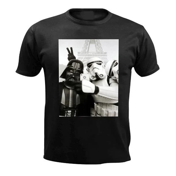 Découvre le côté décontracte de Dark Vador avec ce T shirt Dark Vador Selfie. En compagnie d’un soldat stormtrooper, le roi obscur prend une pose selfie