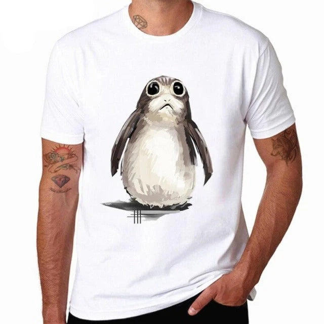 Pour te sentir tout proche de Luke Skywalker, porte ce T Shirt Porg à l’effigie de cet animal qui vivait dans les montages près de l’endroit ou vivait Luke.