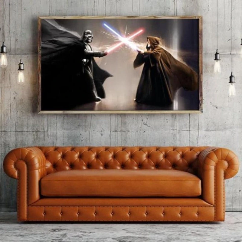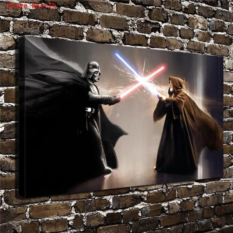 Découvre Obi Wan Kenobi le Maître entrain de combattre Dark Vador le disciple dans une confrontation mortelle pour l’un des personnage.