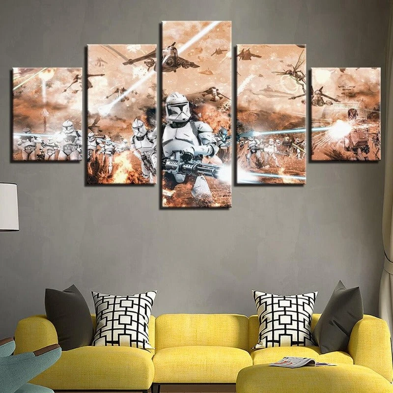 Découvre ce Tableau Mural Star Wars, qui représente et qui immortalise une attaque surprise de troupes d’infanteries sur une base avancé de l’ennemi.