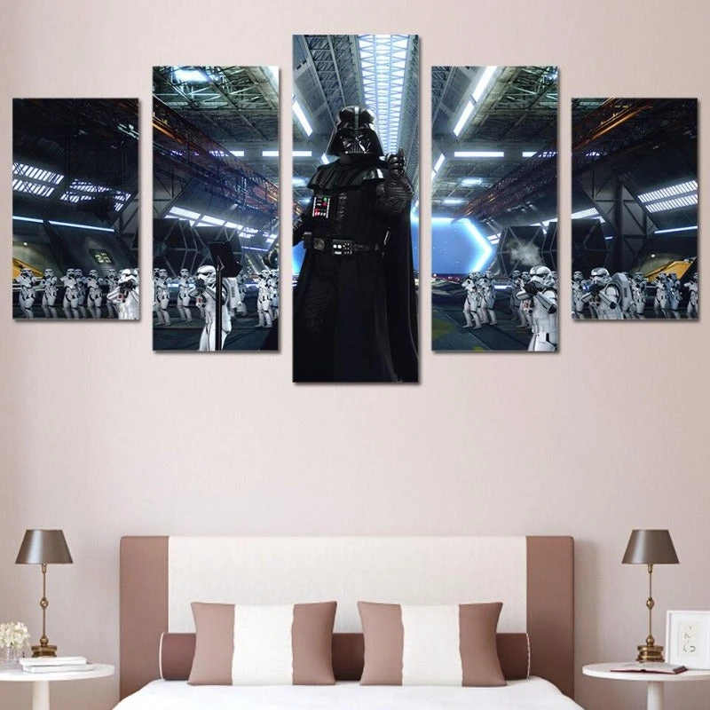 Sur ce panorama qui expose le seigneur du côté obscur de la force en compagnie de son armée qui mettent en joue symboliquement bien sûr le spectateur dans ce Tableau Star Wars troopers.