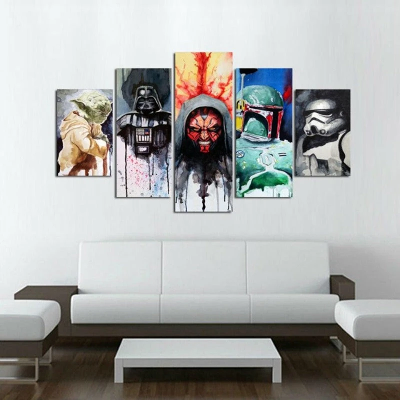 Découvre dans cet ensemble Star Wars de 5 Tableaux qui illustre chacun un personnage emblématique de la saga star wars.